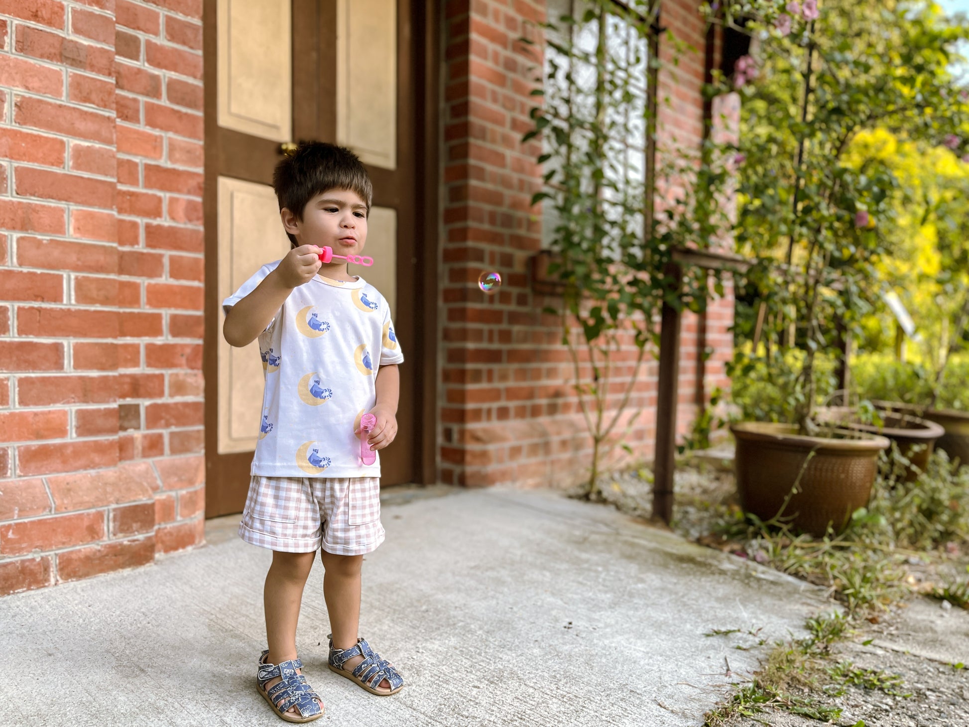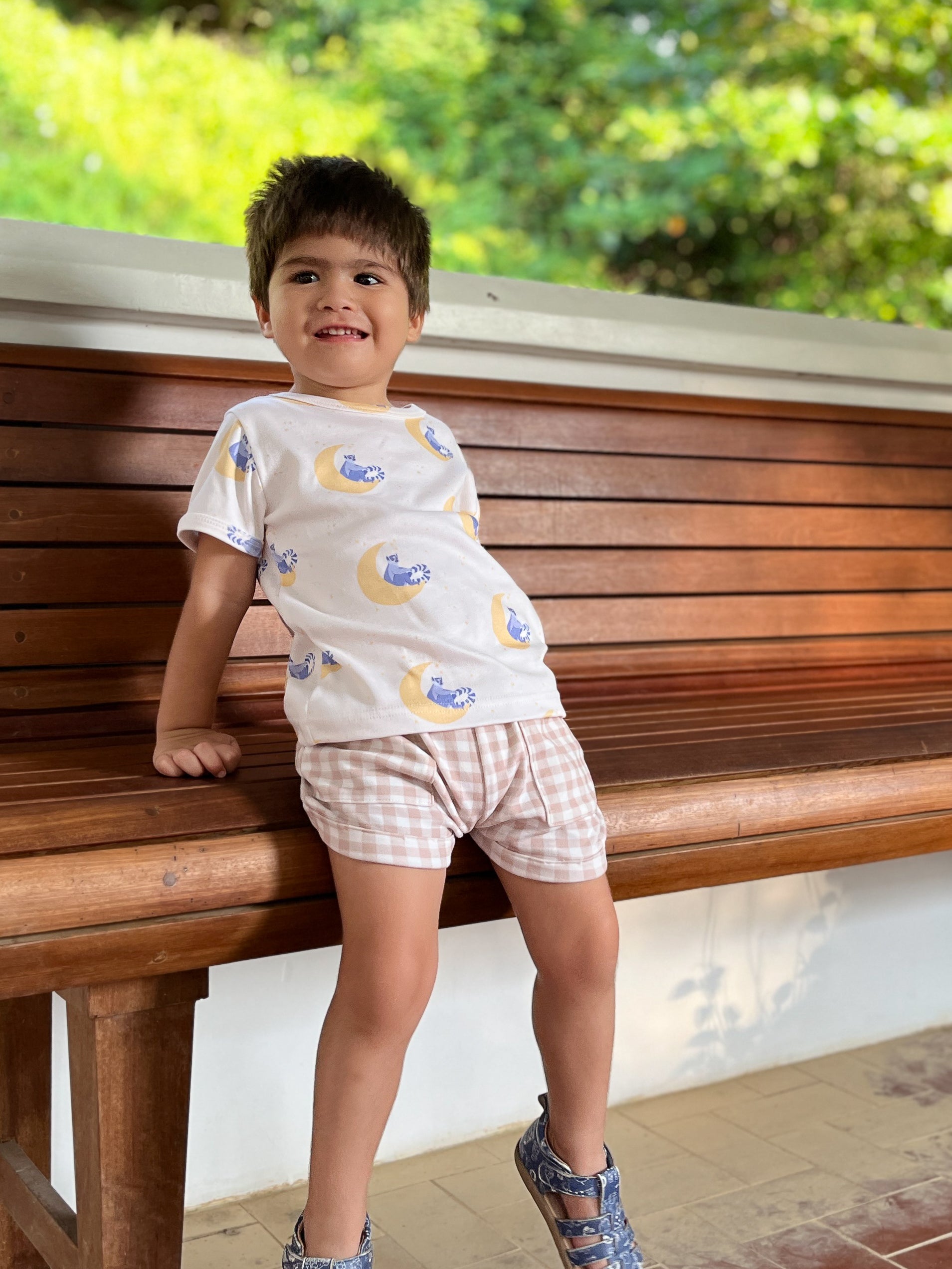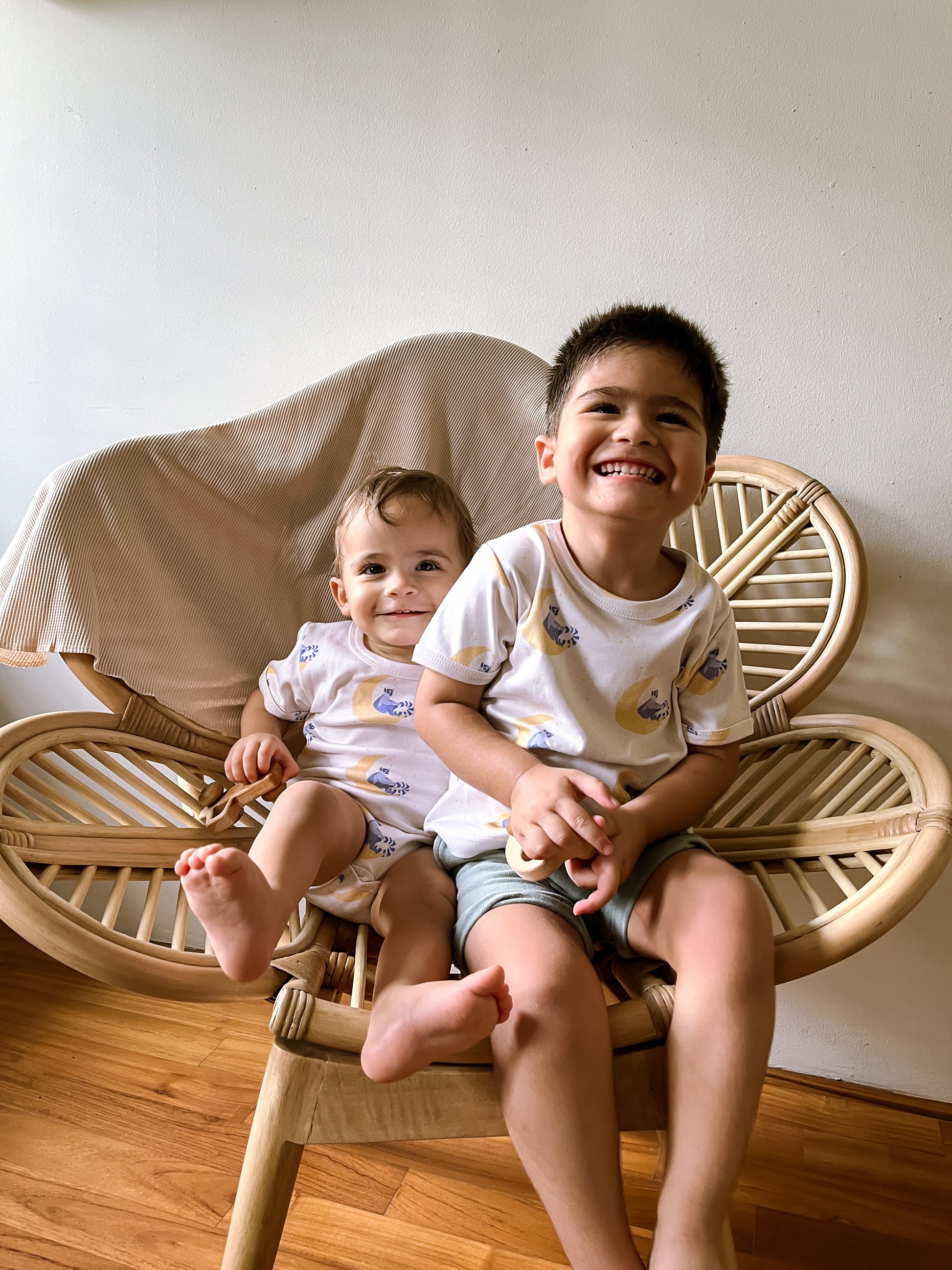 But we know that babies and kids grow at a clip! That's why our clothing are cut generously, and will generally fit well beyond the recommended age.