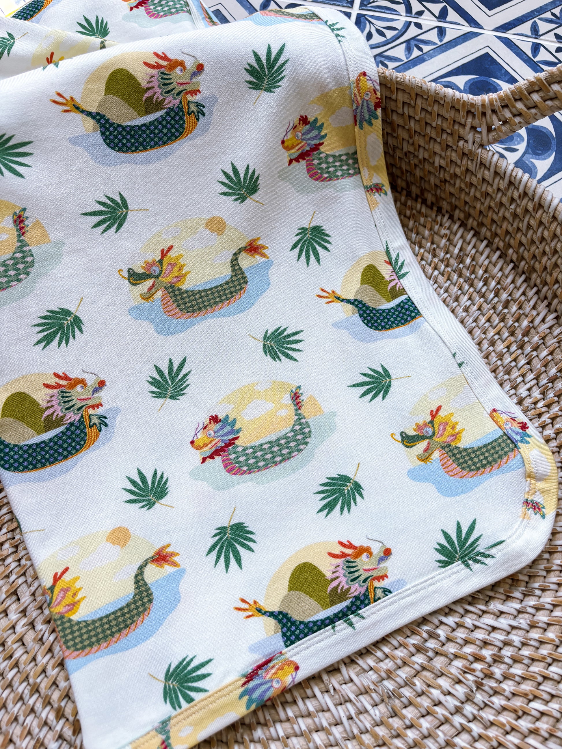 This Swaddle|Wrap|Blanket features an all-over Dragonboats print. Dragon boats are long, narrow boats decorated to look like a Chinese dragon, used for racing in the Dragon Boat Festival, a traditional festival in Singapore!