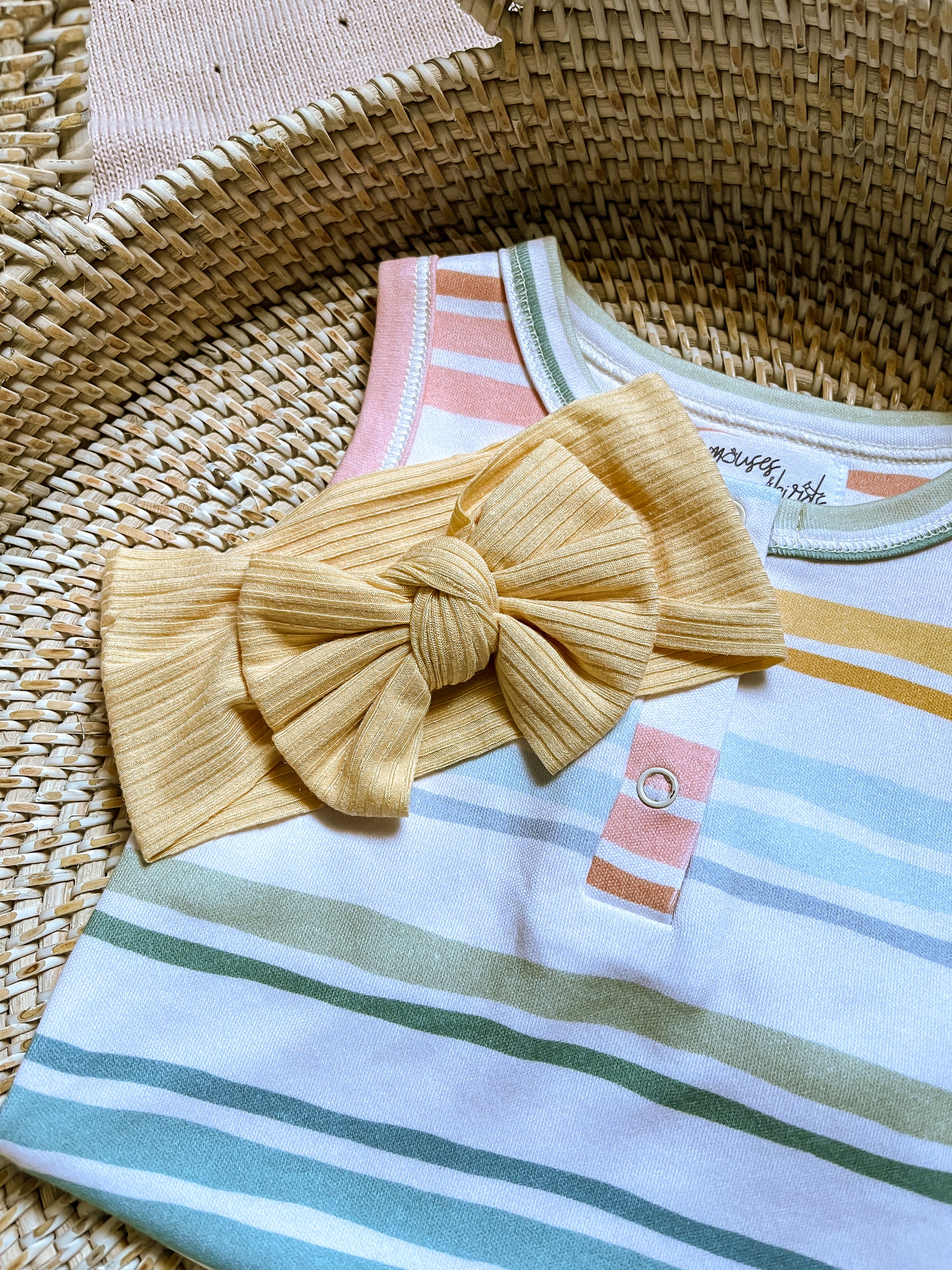 Every baby girl needs the perfect bow wrap to complete her outfit! These super-stretchy ribbed bow headbands come in a whole range of delicious shades - we find it hard to pick out a favourite!