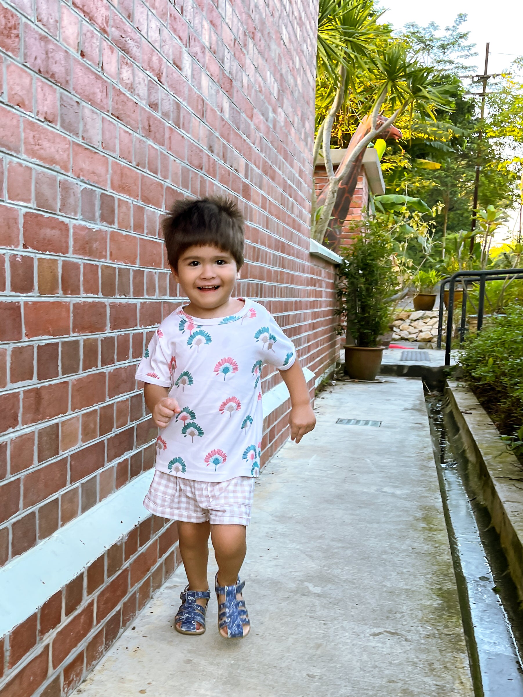 But we know that babies and kids grow at a clip! That's why our clothing are cut generously, and will generally fit well beyond the recommended age.